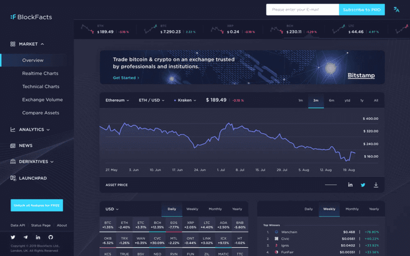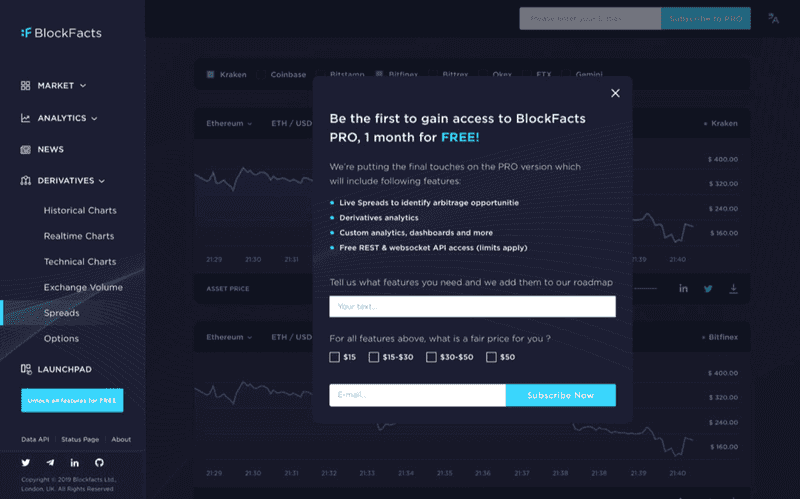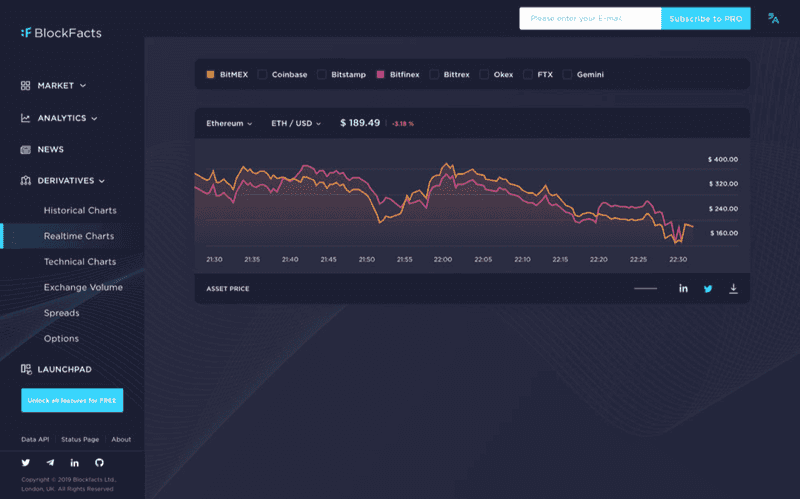 Blockfacts is a digital data provider, providing access to a large number of crypto exchanges through a single API.