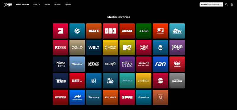 Joyn is partnered with dozens of other media content providers and offers media libraries for each of them.