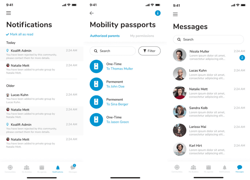 Koalift is a product which aims to help parents get connected in order to safely exchange information and organize ride services for their children in a common community.