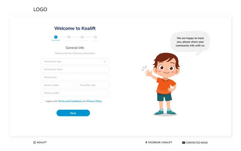 Community onboarding is a web application where communities can register in order to be a part of the Koalift ecosystem. This application represents a multi-step form registration process which intuitively leads the users through a series of steps, thus making the process smoother, as opposed to one big registration form.