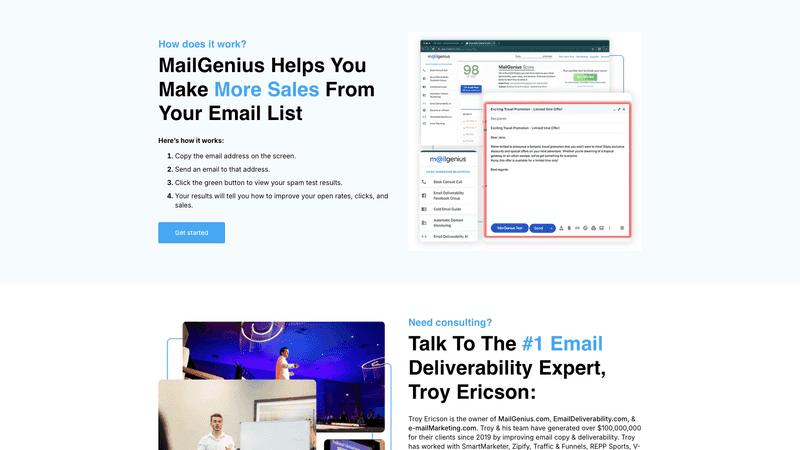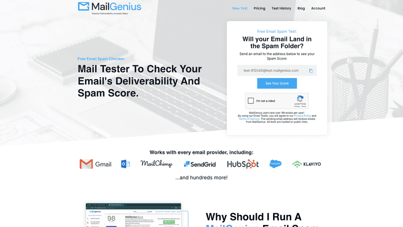 Gives users access to static audit email addresses which users can use when sending bulk emails, users can log into mailgenius app and review status/result of their email deliverability.